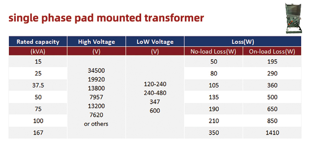 Single-phase American box-type transformers have a rated capacity of 15-250kVA. Single-phase American box-type transformers are generally used for civilian use where single-phase power is required, such as household appliances, etc., and their capacity is relatively small compared to three-phase American box-type transformers.